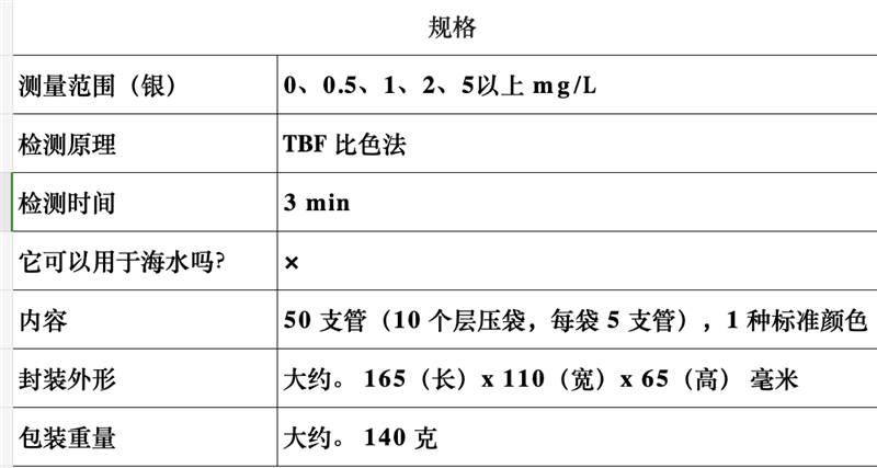 日本共立银水质快速测试包,型号:WAK-Ag,测量范围:0-5mg/L,测量时间:3分钟、测量次数:50次,